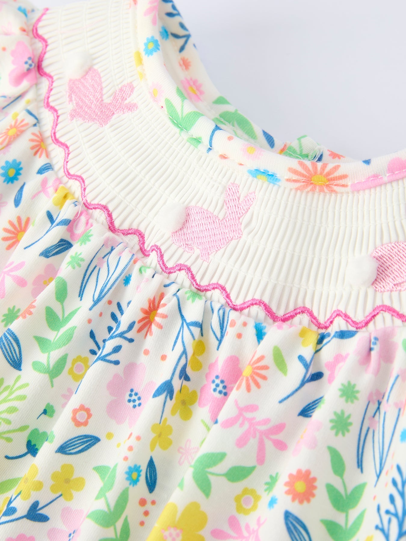 Rylee Faith Designs Easter Bunny Embroidered Pom-Pom Short-Sleeved Girls Romper